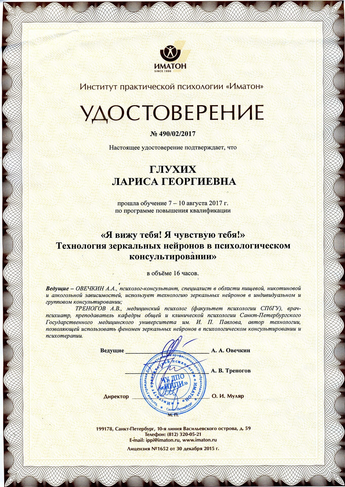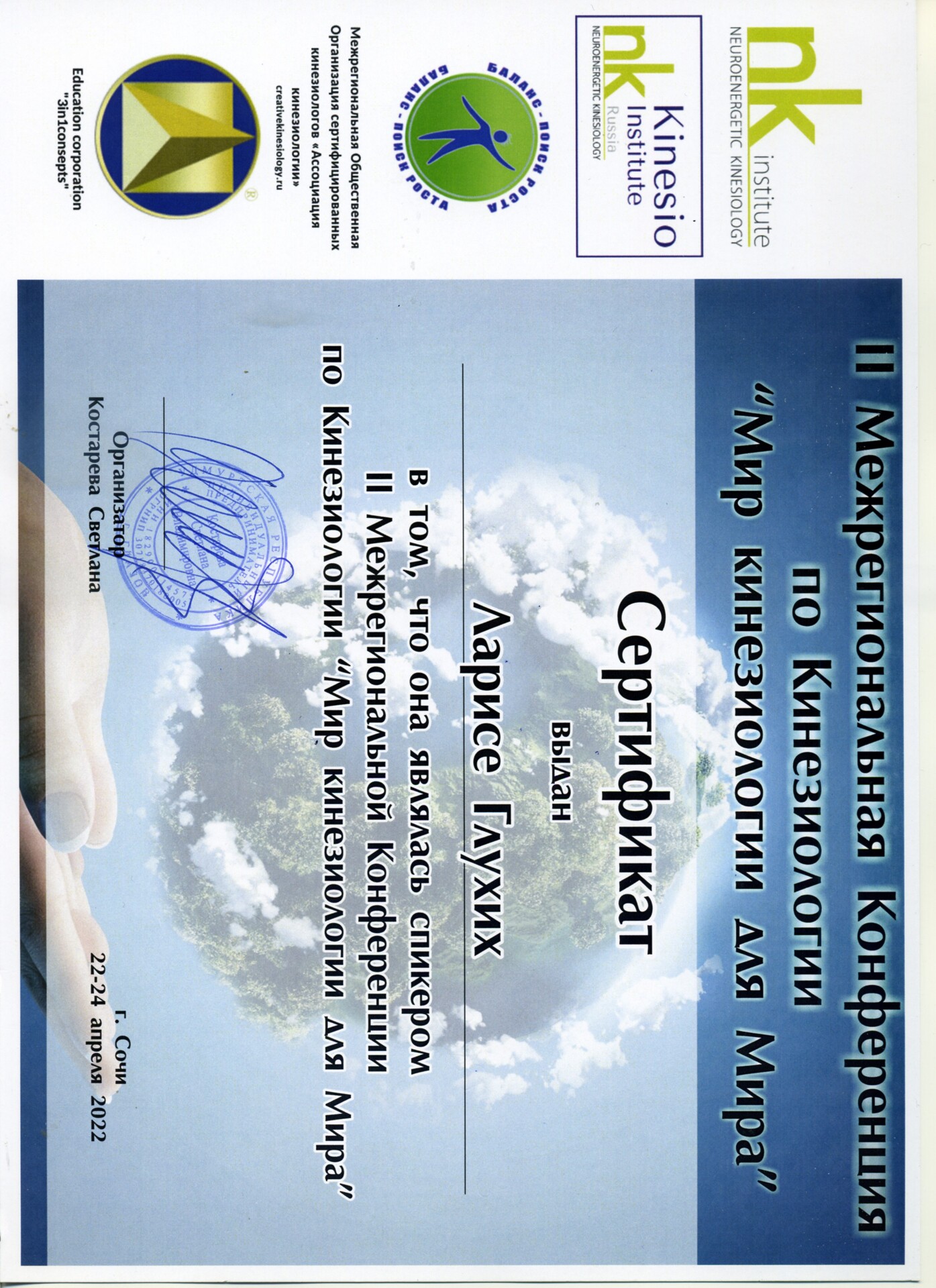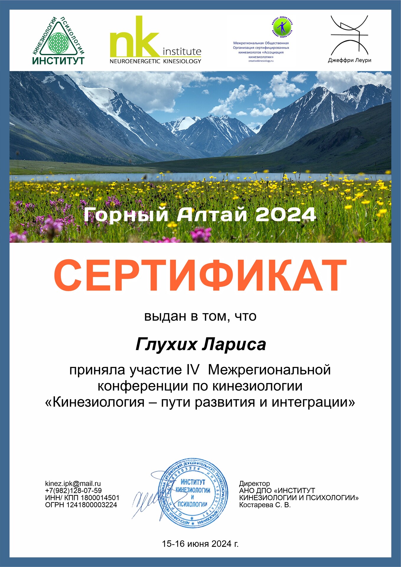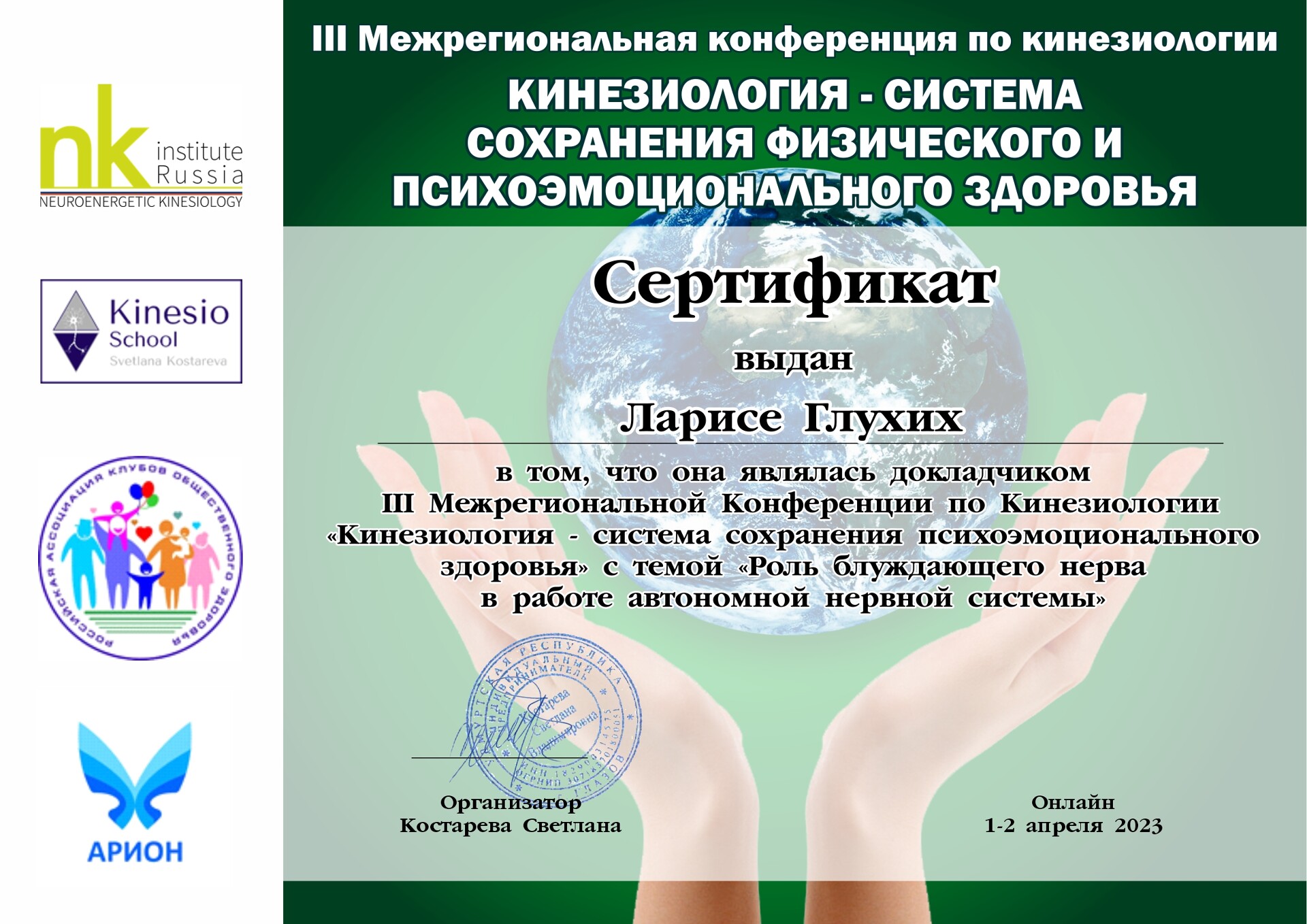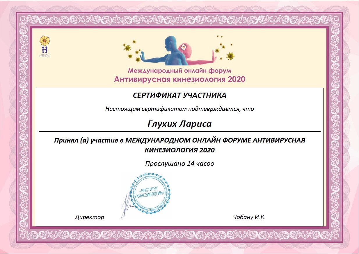 После прохождения семинара вы получаете Сертификат участия от ИНСТИТУТА КИНЕЗИОЛОГИИ И ПСИХОЛОГИИ.